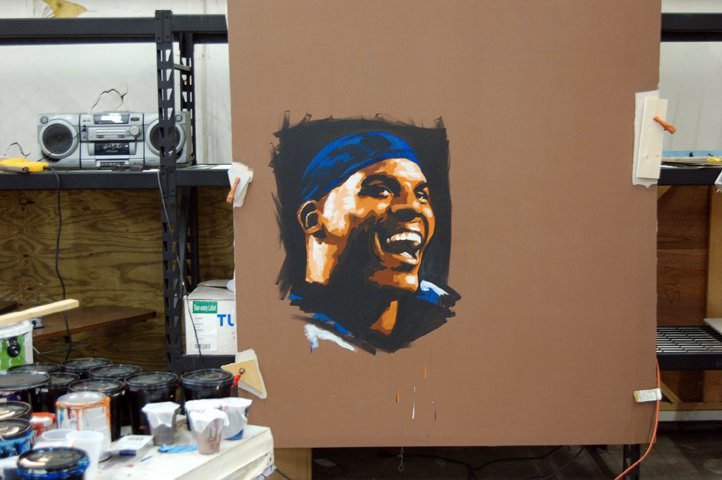 Crafted using nothing but the finest house sponges and regular ol’ wall paint from your neighborhood Lowe’s and Home Depot (who needs fancy art supplies, right?), this behemoth of a painting was a riot to create on a hand-crafted canvas that’s taller than your average defensive lineman – over 7 feet tall!