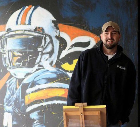 Crafted using nothing but the finest house sponges and regular ol’ wall paint from your neighborhood Lowe’s and Home Depot (who needs fancy art supplies, right?), this behemoth of a painting was a riot to create on a hand-crafted canvas that’s taller than your average defensive lineman – over 7 feet tall!